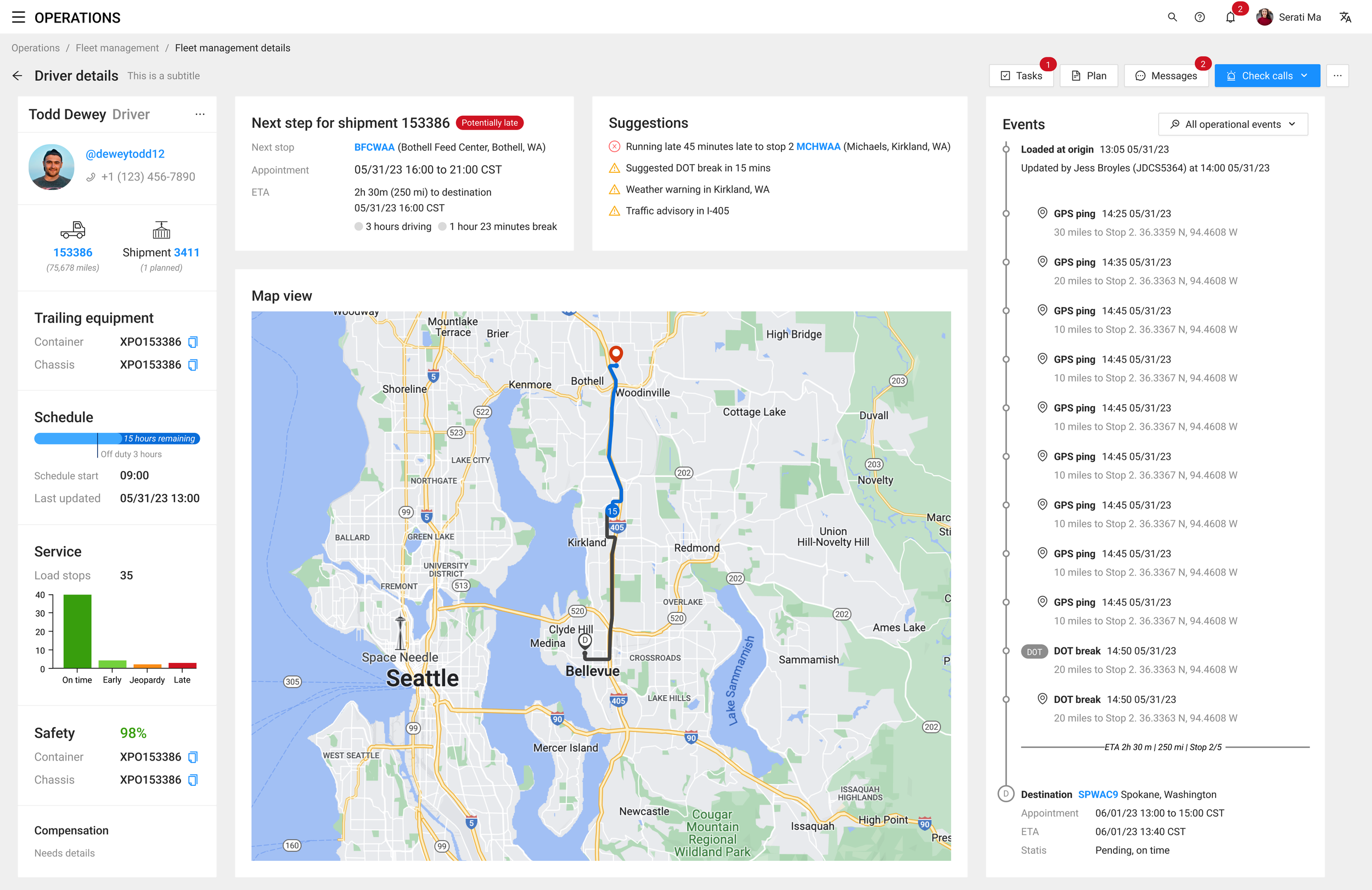 I specifically worked in the operations space. Big picture: Users here work on day-to-day operations once an order is received and the shipment is ready for transporation. The users of the product are trying to find the right drivers, the right equipment, the right routes, communicating with the drivers and maintenance crew, and then tracking the drivers as they are on the road.