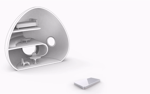A projector projects onto the house, creating an augmented reality environment that the child can customize with wallpapers, changing colors, adding photos etc.